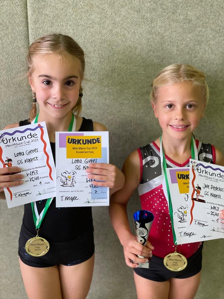 Jule Debelius und Lotta Gieres von den Kaarster Nachwuchsspatzen schafften es punktgleich auf den ersten Platz zu kommen. In der Gesamtwertung von beiden Wettkämpfen wurde Jule zusätzlich Dritte.